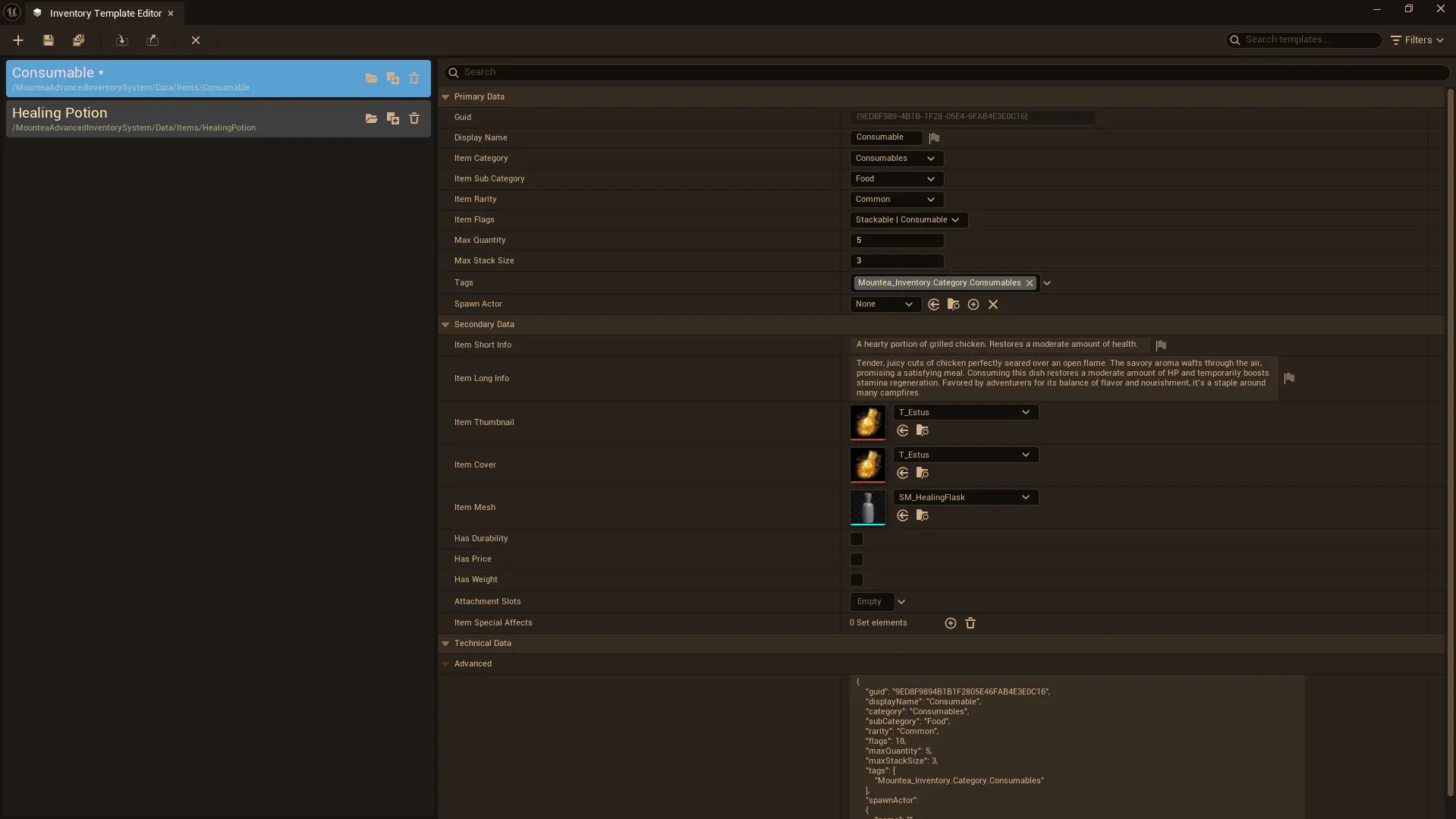 - Item Instances: Instances of Templates which are being managed by Inventory Component
